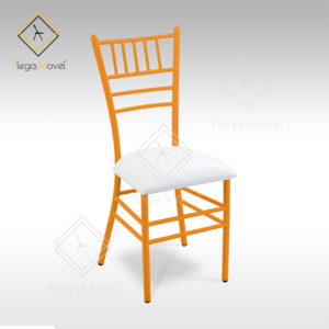 Silla Tiffany Apilable Respaldo Curvo Anaranjado Vinil Blanco